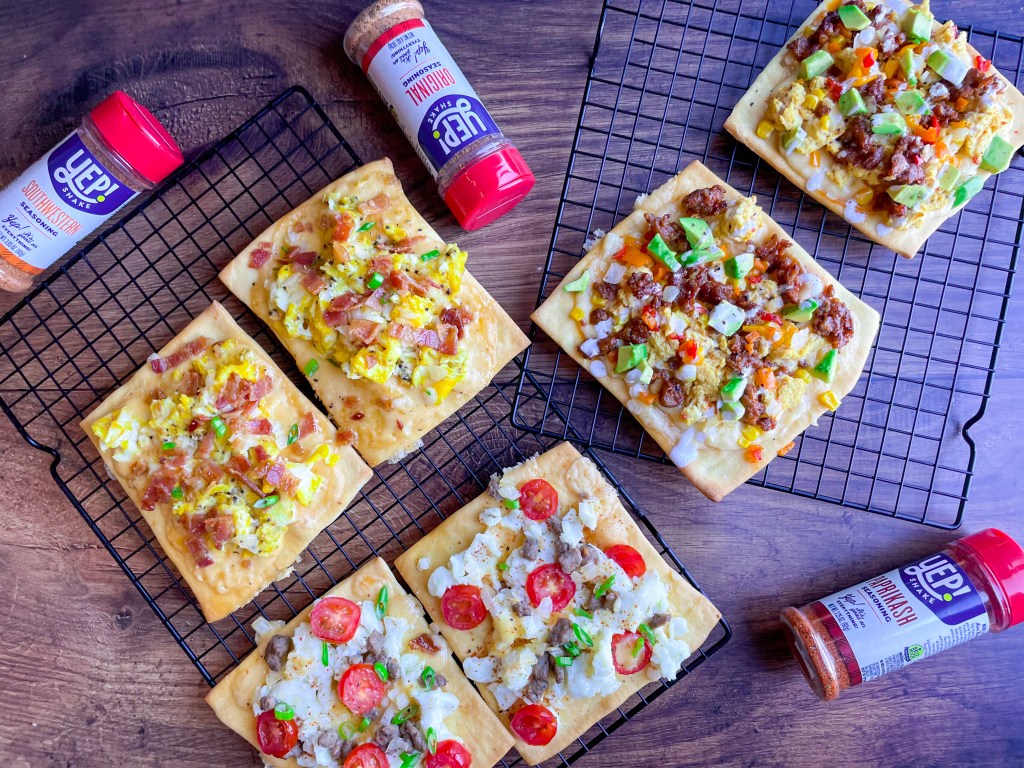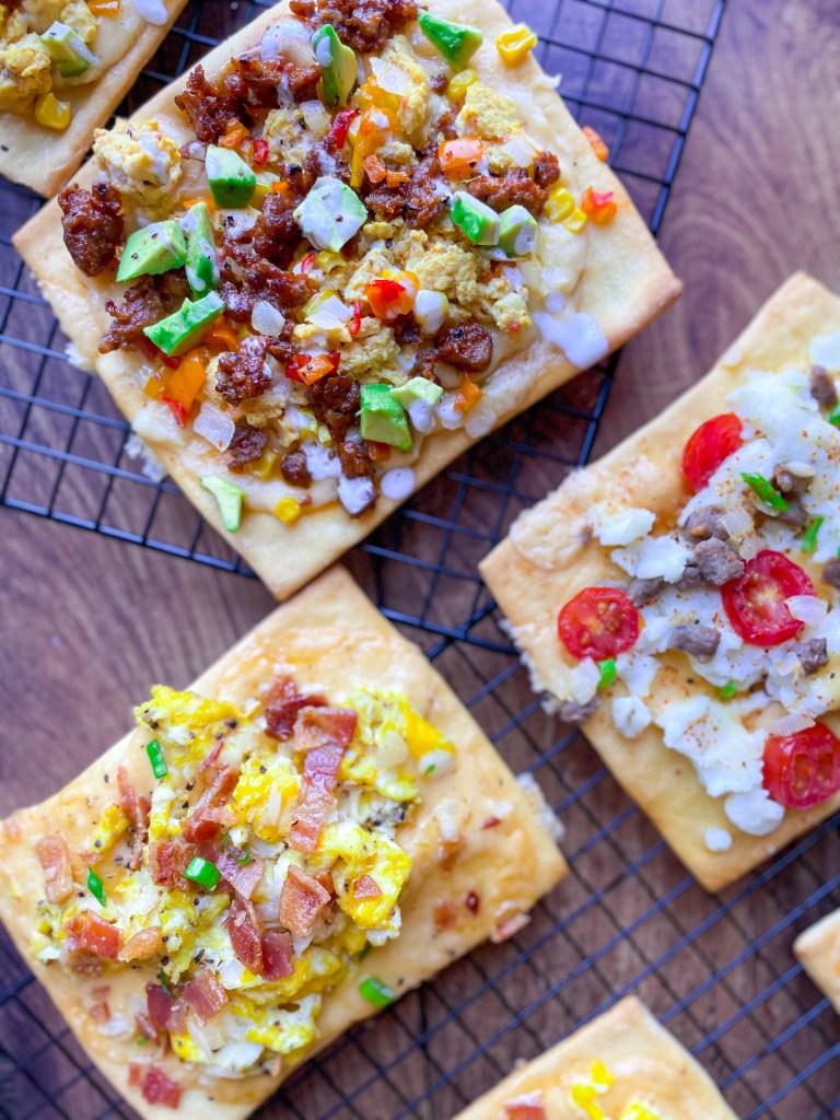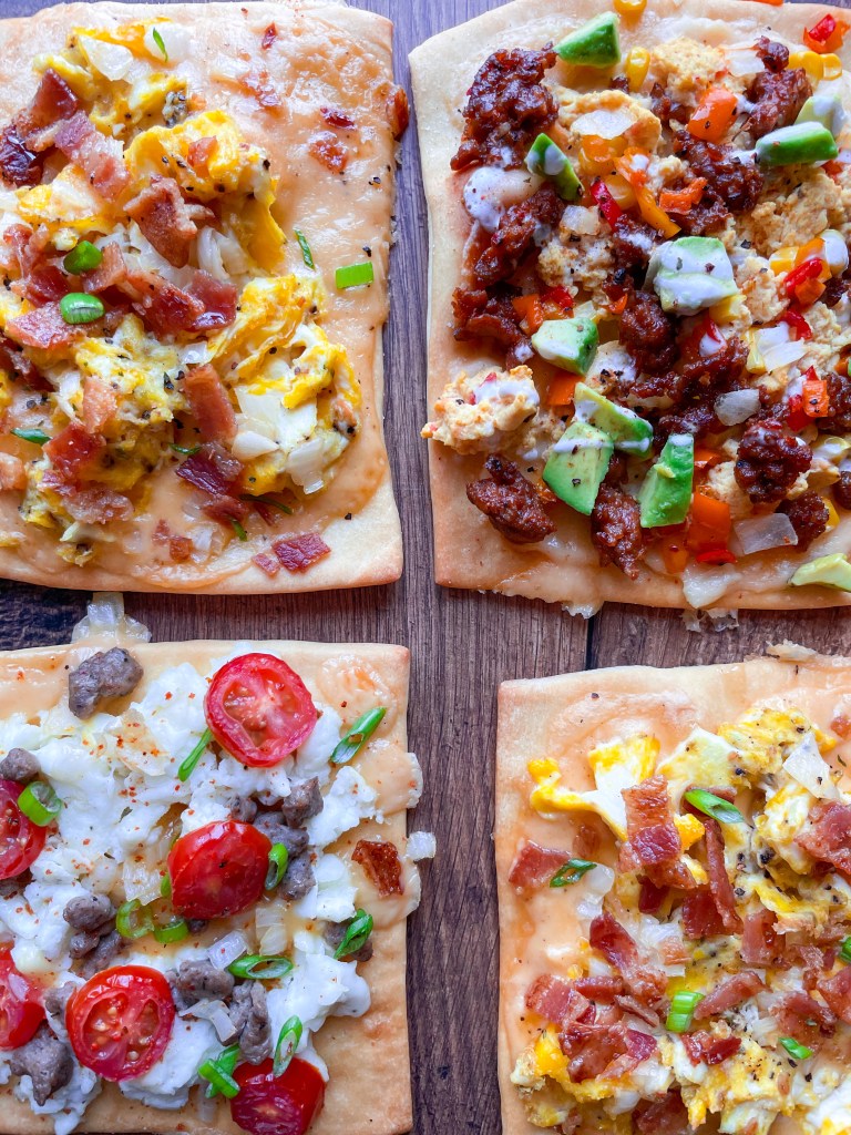 Here are 3 simple ways to make breakfast pizza in the comfort of your own home! Or you can do it like me and make mini pizzas so there is something for everyone!