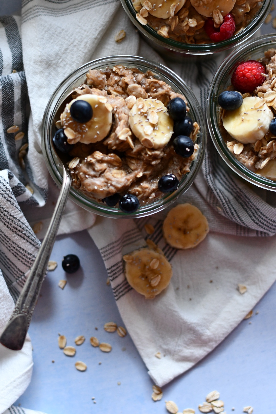 Start by bringing your plant milk to a boil in a small saucepan. Next, add in the nut butter, banana, vanilla and Nutrasweet. Combine until smooth. Lower the heat to simmer and add in the oatmeal and chia seeds. I don’t like my oats mushy so I only let them simmer for a couple of minutes. Add your fresh fruit, drizzle with honey and sprinkle a few more chia seeds. Enjoy!